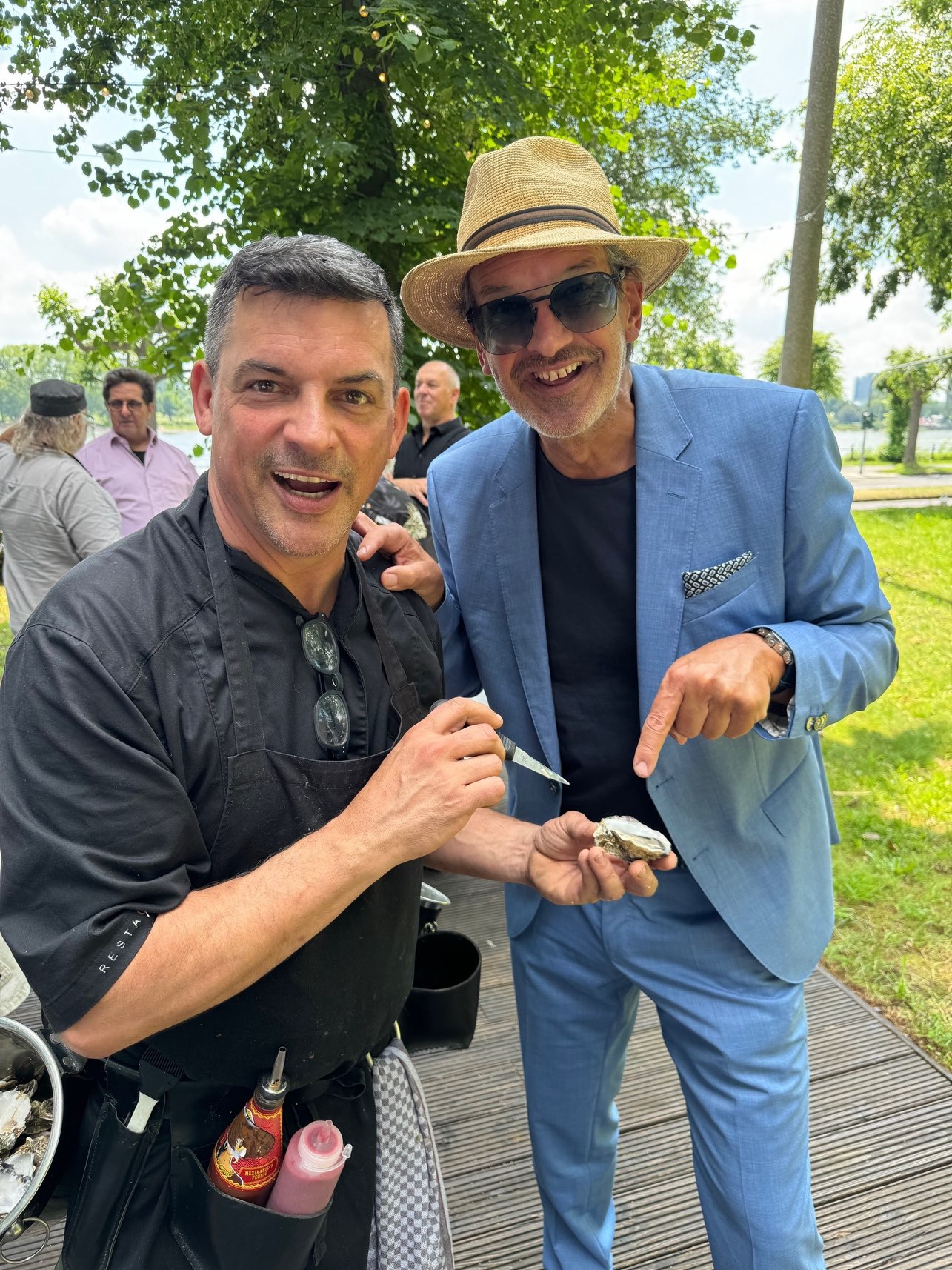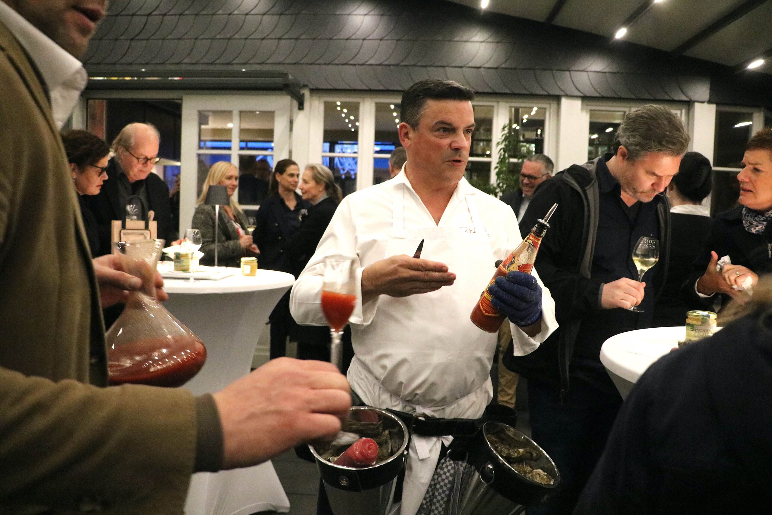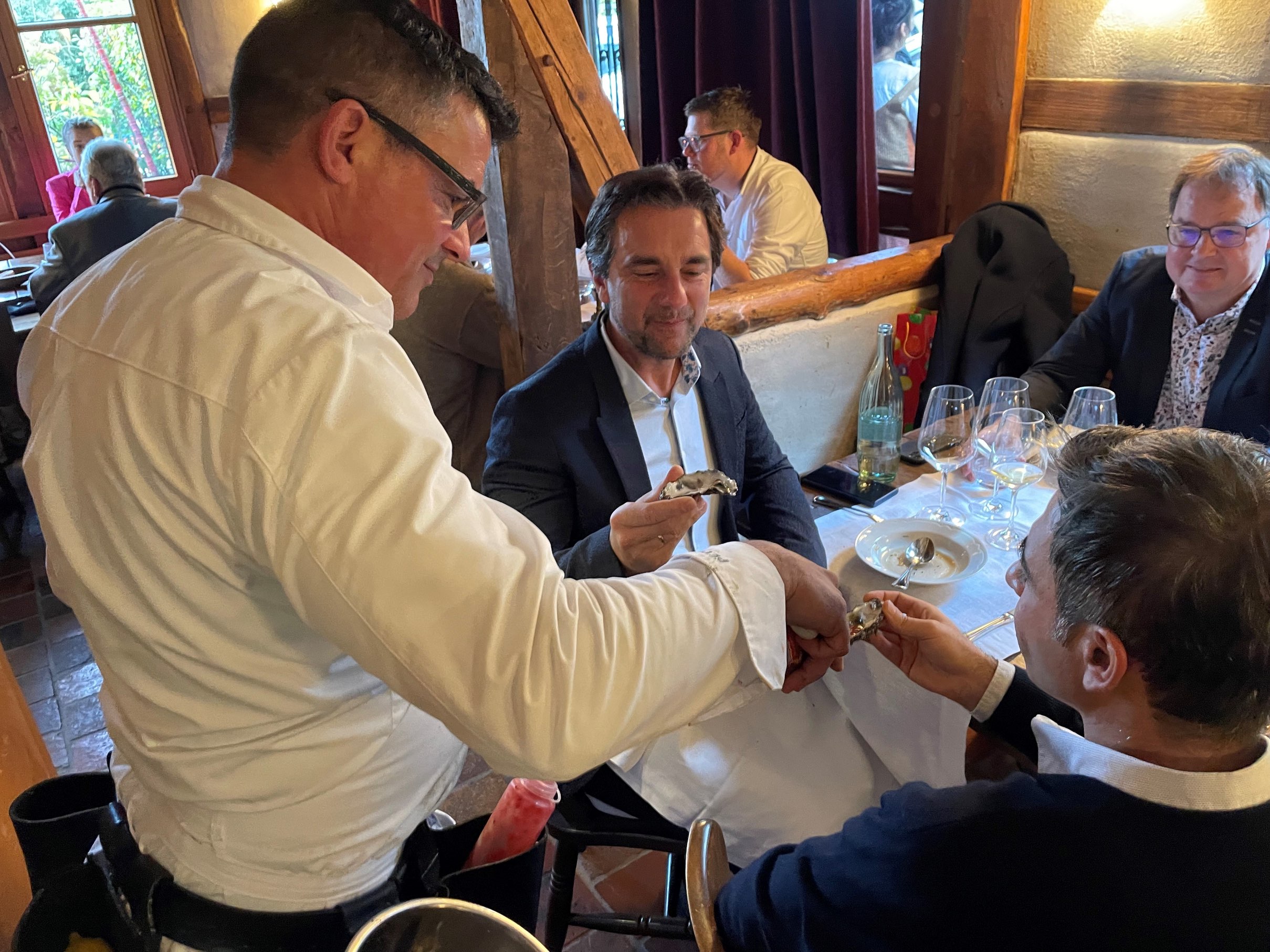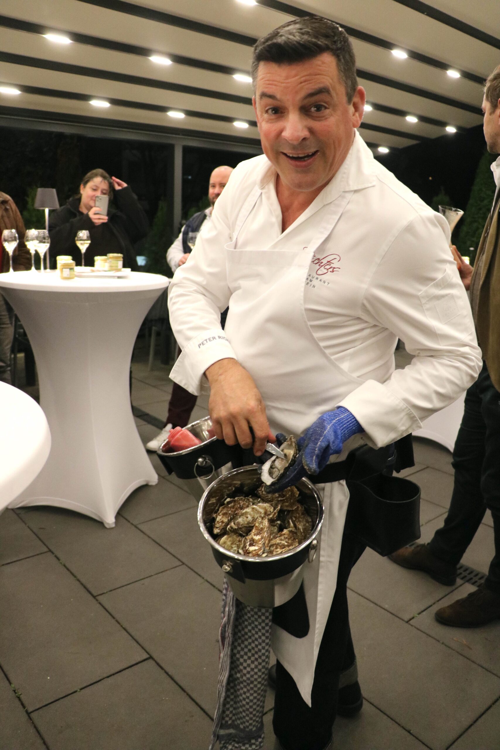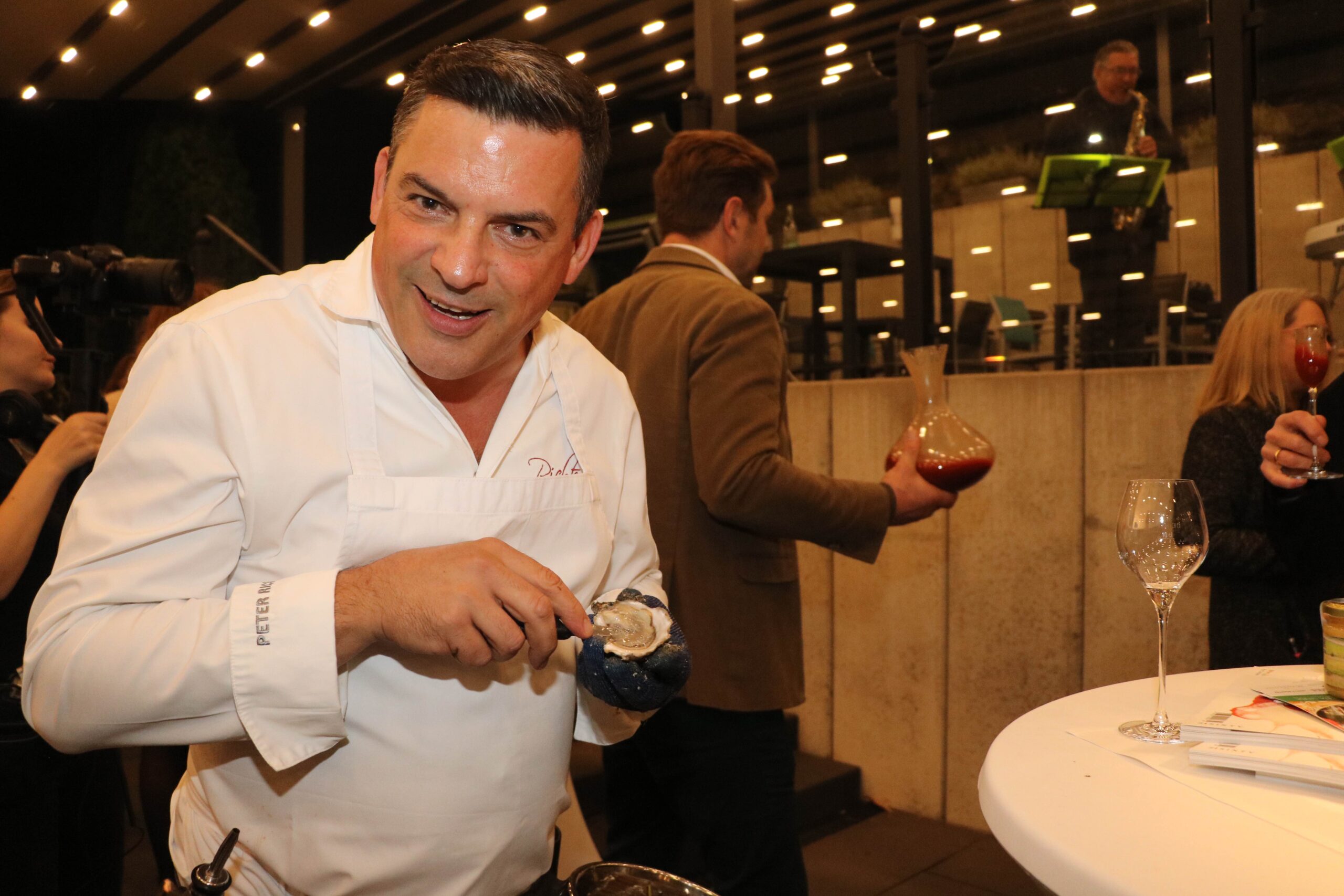 „Es ist immer eine Wonne und ein Genuss, Peter bei seiner leidenschaftlichen Präsentation und dem Öffnen der Austern zu erleben. Sein special Austernsommelier-Outfit ist schon was ganz Besonderes, wie Peter eben auch, eine Augenweide.“