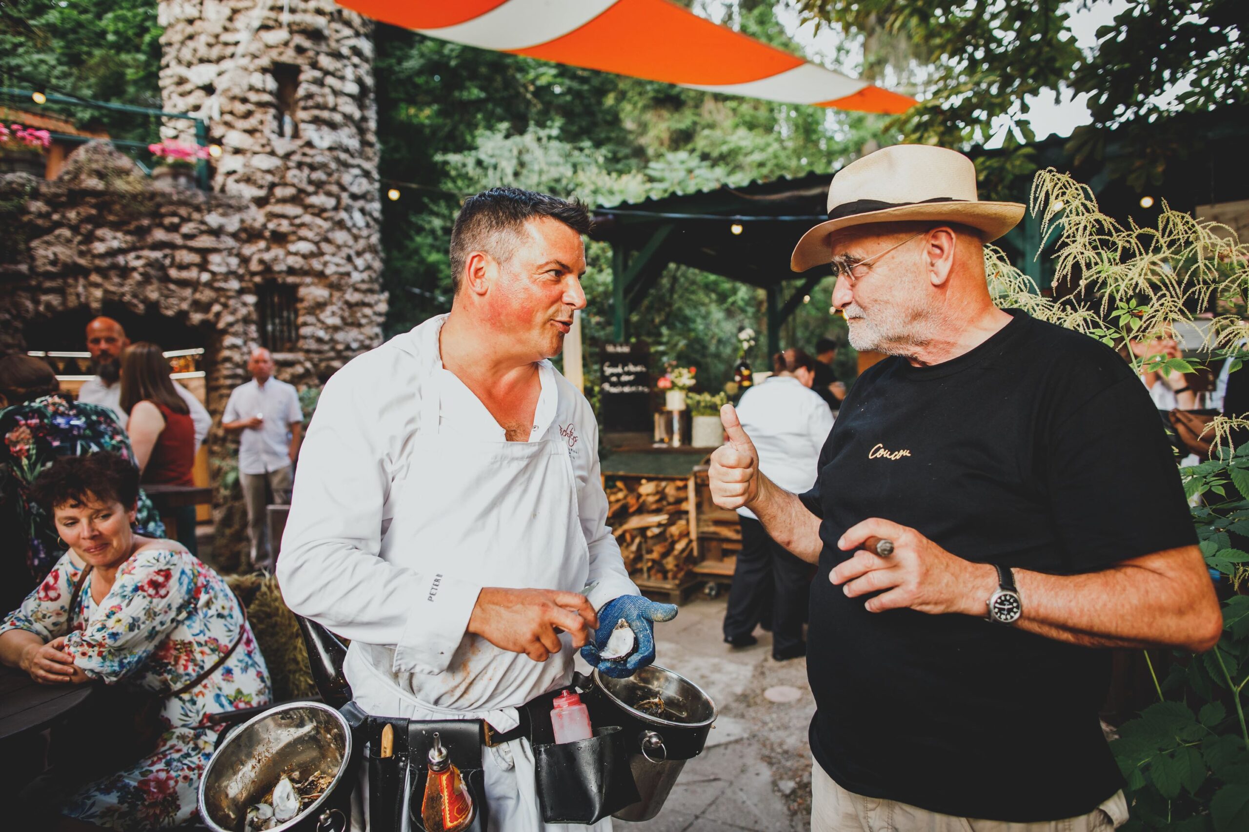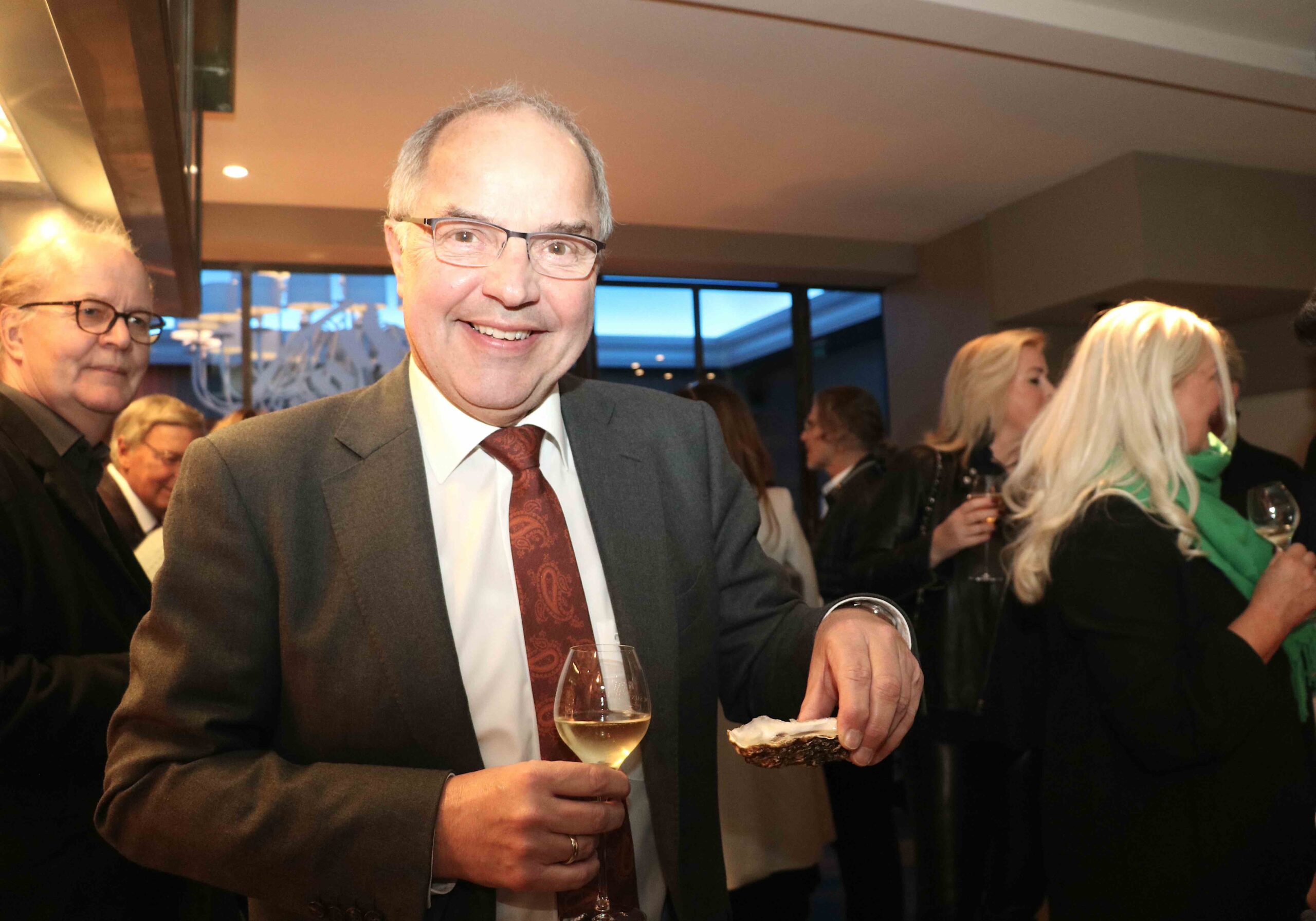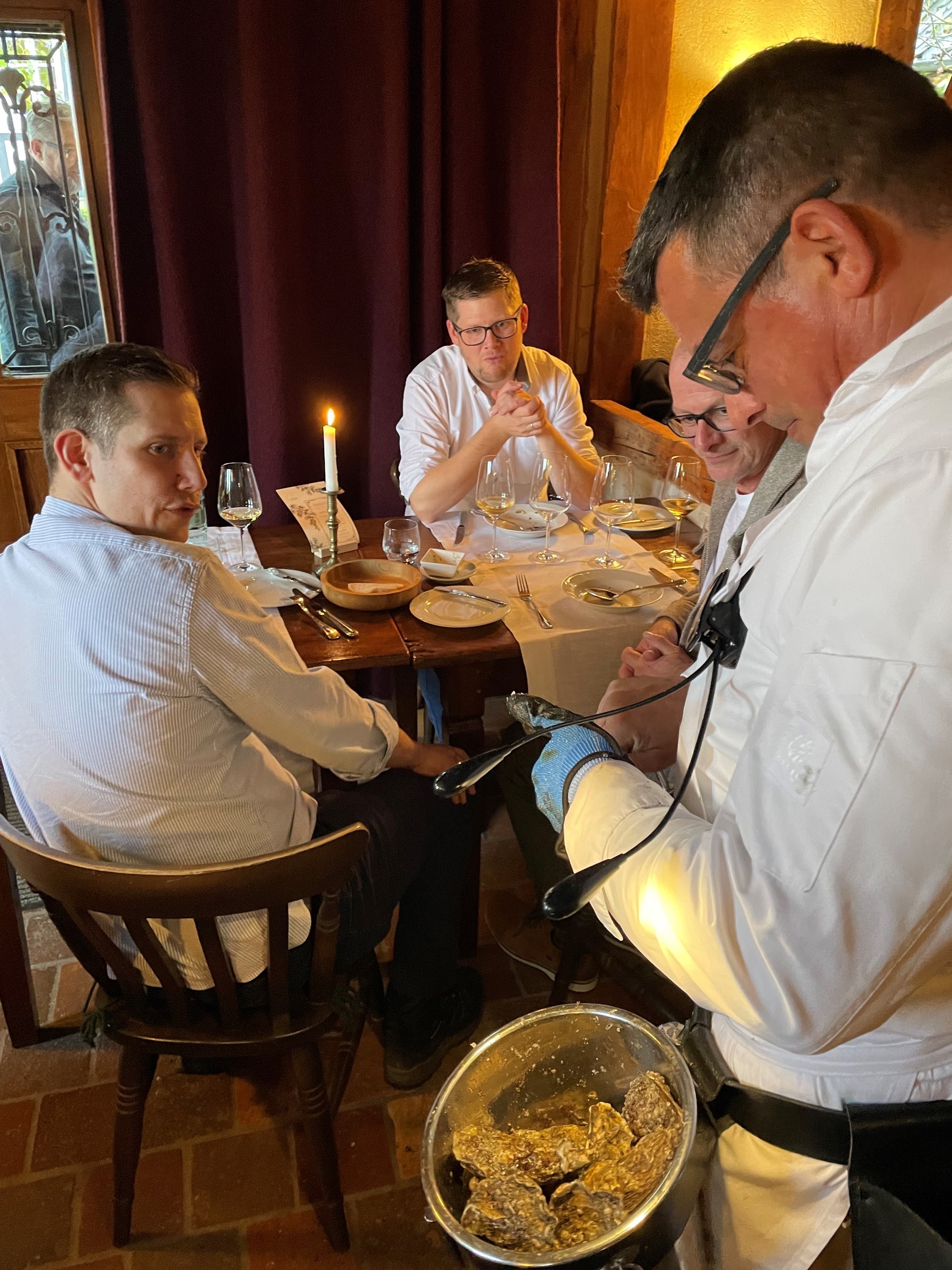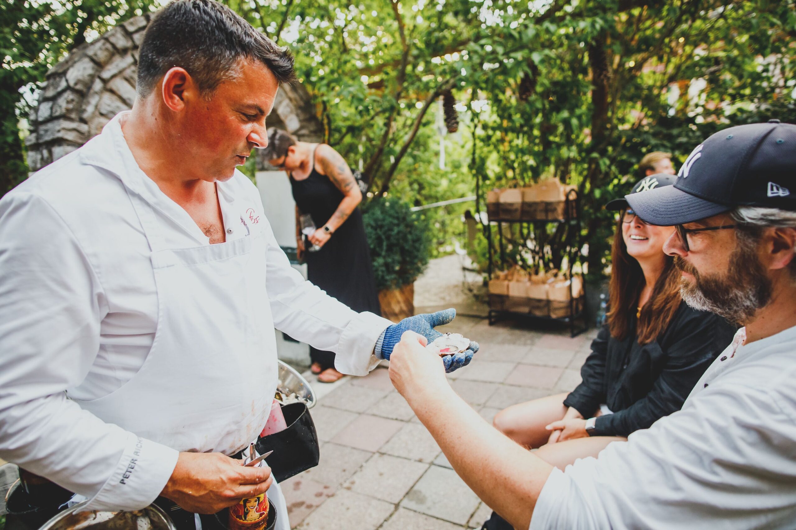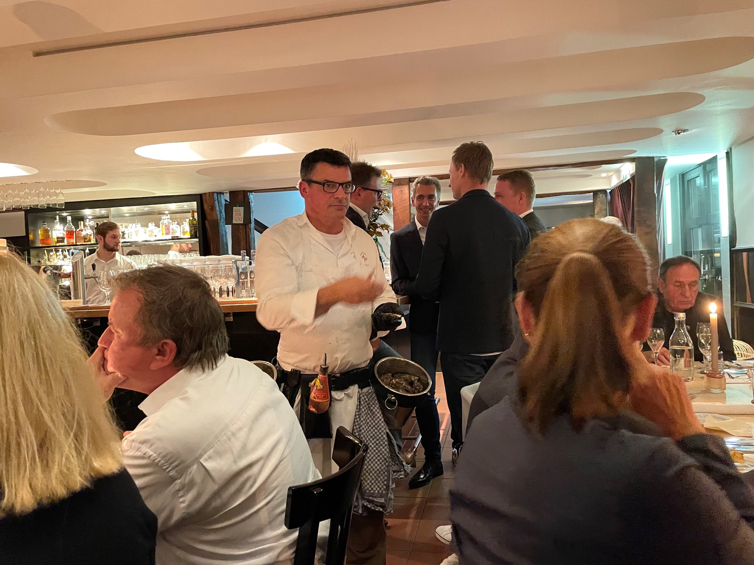 „Es ist immer eine Wonne und ein Genuss, Peter bei seiner leidenschaftlichen Präsentation und dem Öffnen der Austern zu erleben. Sein special Austernsommelier-Outfit ist schon was ganz Besonderes, wie Peter eben auch, eine Augenweide.“
