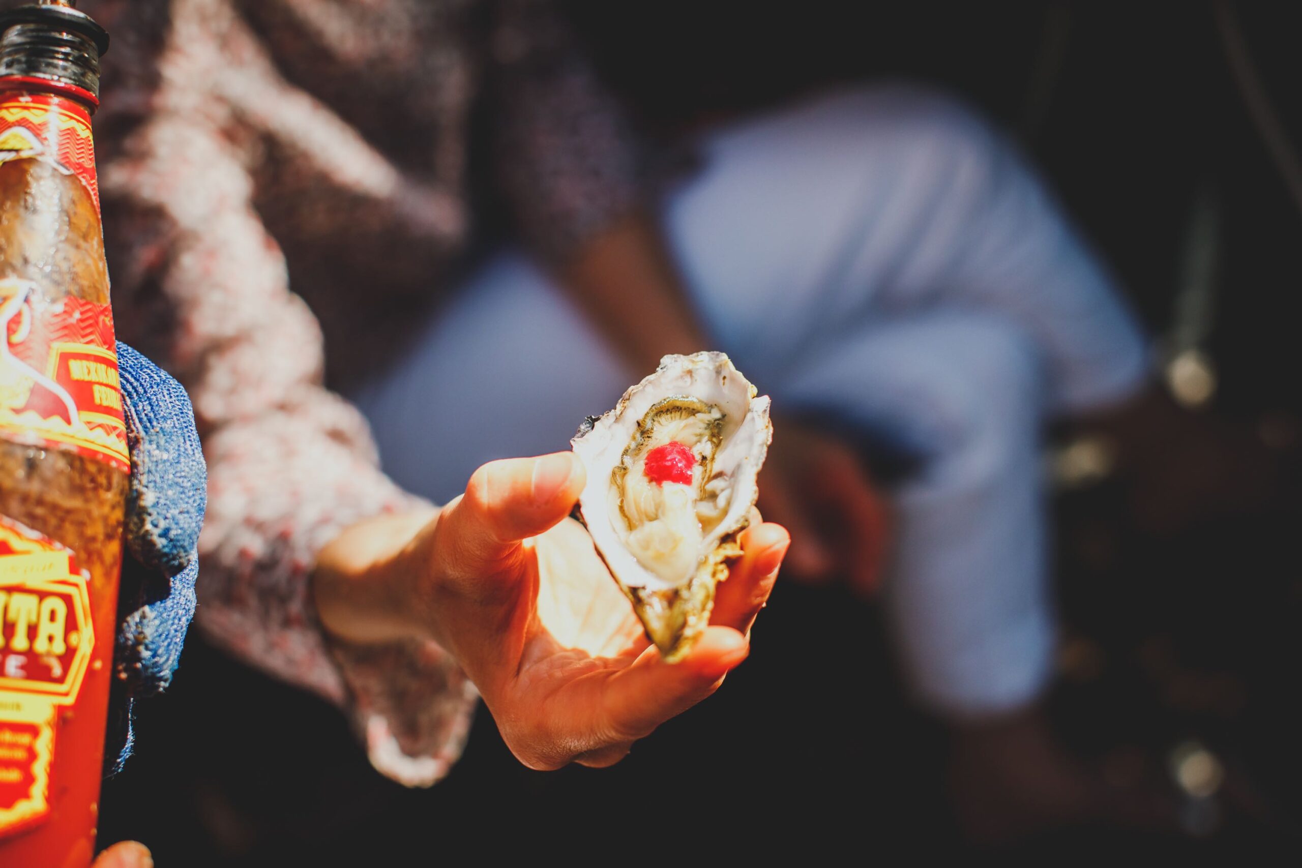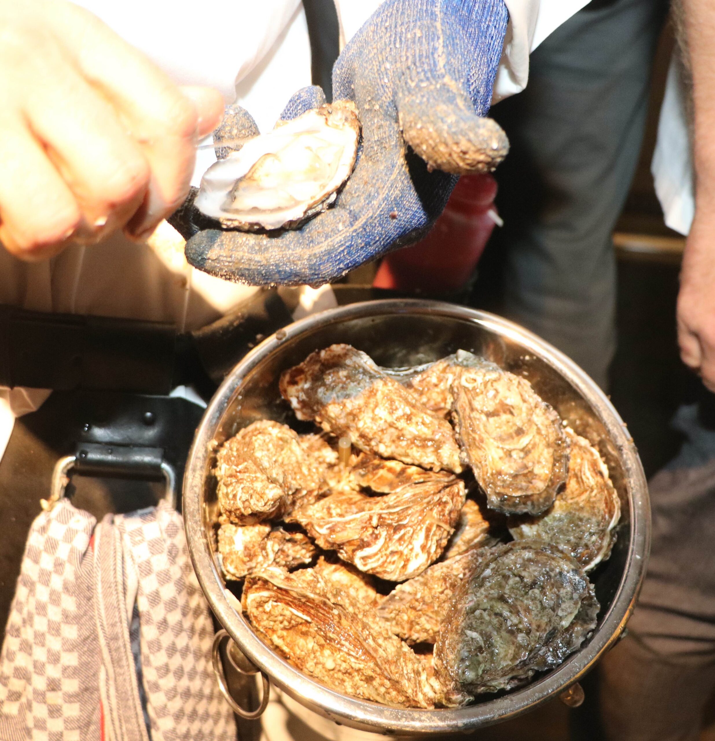 Mit Technik. Mit einem Austernmesser. Mit einem Kettenhandschuh. Mit einem Austerngürtel. Mit zwei Austerneimern. Mit einem Muscadet. Mit einer Bloody Mary. Mit einer Schalotten-Vinaigrette. Mit Geschmack. Mit Expertise. Und natürlich mit Leidenschaft für dieses tolle Produkt!